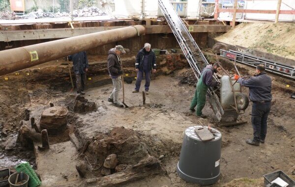 Seit dem Sommer ist das Archäologische Museum Hamburg auf der Suche nach der frühen Geschichte der Stadt im Bereich der Harburger Schloßstraße. Mit einem zehnköpfigen Team wird noch bis April 2024 eine Grabungsfläche von etwa 600 Quadratmetern archäologisch untersucht. Bis zu einer Tiefe von 1,30 Meter über NN sind die Archäologen und Archäologinnen bereits vorgedrungen, dabei erfolgte ein Aushub von mehr als 360 Kubikmetern Erdreich. Aufgrund des ganzjährigen Einsatzes, auch bei winterlichen Temperaturen, wurde die Grabungsstelle mit zwei großen Zelten geschützt. Doch der Aufwand hat sich schon jetzt gelohnt: Das Team konnte bereits eine Fülle von neuen Erkenntnissen zur Harburger Siedlungsgeschichte sammeln. Diese sind für die Forschung besonders wichtig, da aus der Zeit des Gasthauses „Zum Weißen Schwan“ nur wenige archivalische Quellen vorliegen. Ziel der Ausgrabung ist es, Siedlungsreste zu erfassen, um die mittelalterliche und neuzeitliche Besiedlungsgeschichte des Areals zu klären.