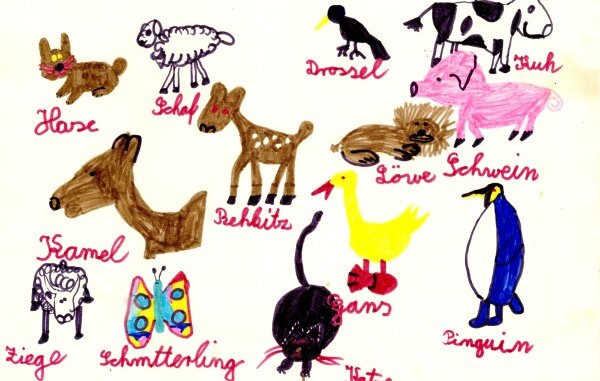 Auf meinem Bild versammeln sich zahlreiche Tiere. Sie sind nebeneinander angeordnet, fast wie in einem inneren Register. Die Namen sind sorgfältig dazugeschrieben. Vielleicht ein Versuch, die Welt zu ordnen, vielleicht auch, sie festzuhalten oder ihr einen sicheren Platz zu geben.