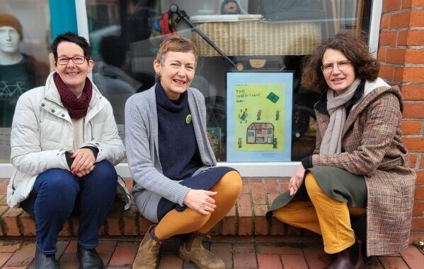 Teamfoto mit Frau Milewski (Buxtehude Museum), Frau Tiedemann (Geschäftsinhaberin Lenya natürlich! vor ihrem Schaufenster) und Frau Hainke (Buxtehuder Bulle). (Copyright Melanie Hainke)