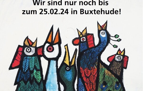 Wer Piattis liebenswertes Federvieh und viele weitere seiner farbenfrohen Tierbilder sehen möchte, hat noch bis zum 25.02.24 die Gelegenheit im Buxtehude Museum. (Foto: Dirk Uhlenbrock © Verein „Celestino Piatti – das visuelle Erbe)
