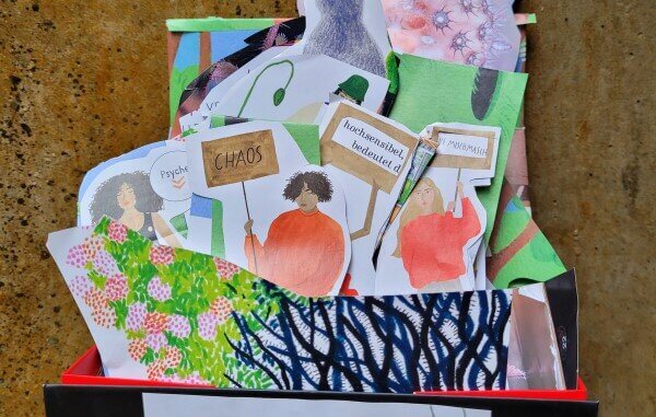 Wie können wir destruktiver Gewalt mit Kreativität begegnen? In der vom Bezirksamt Harburg geförderten Gruppe „Mit Bild- und Wortnotizen gegen Gewalt“ tauschen wir uns über den künstlerischen Ausdruck in einem geschützten Rahmen aus.